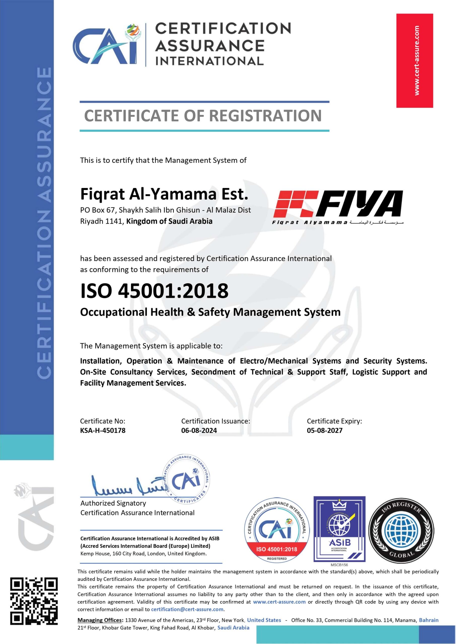 شهادات الأيزو إدارة الجودة نظام إدارة البيئة إدارة المخاطر إدارة المرافق - نظام الإدارة الصحة والسلامة المهنية